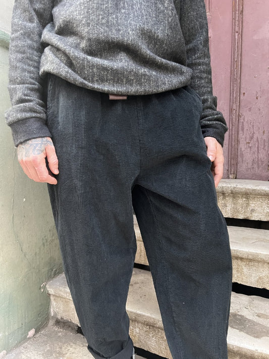 Unisex Fitilli Kışlık Kadife Pantolon Antrasit – Beli Lastikli, Cepli