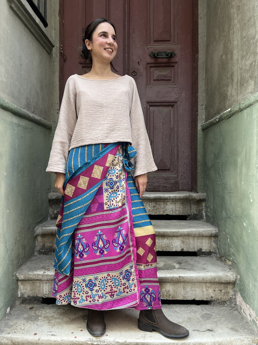 Çift Taraflı Nepal Bohem İpek Etek – Etnik Desenli