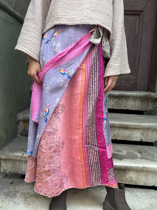 Çift Taraflı Nepal Bohem İpek Etek – Kuş Desenli