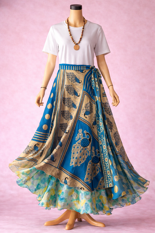 Çift Taraflı Bağlamalı İpek Etek – Mavi Tavuskuşu (Nepal)