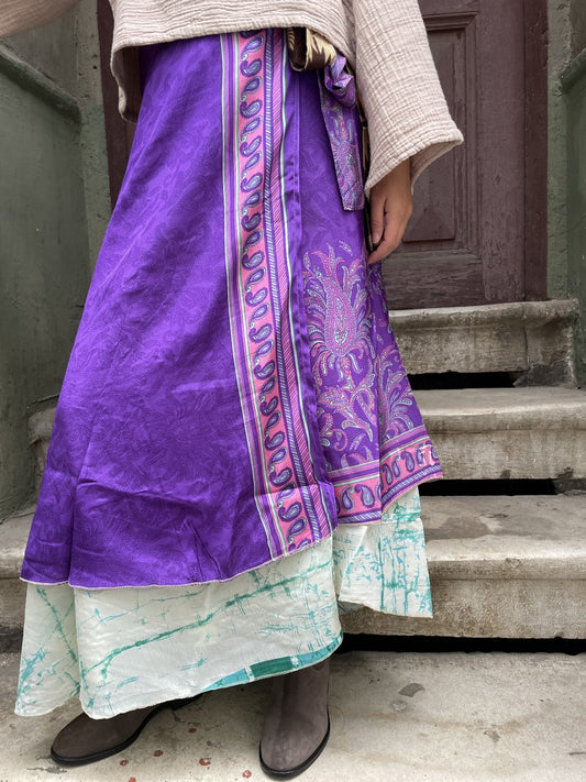 Bohem Nepal Mor Beyaz Desenli Bağlamalı İpek Etek