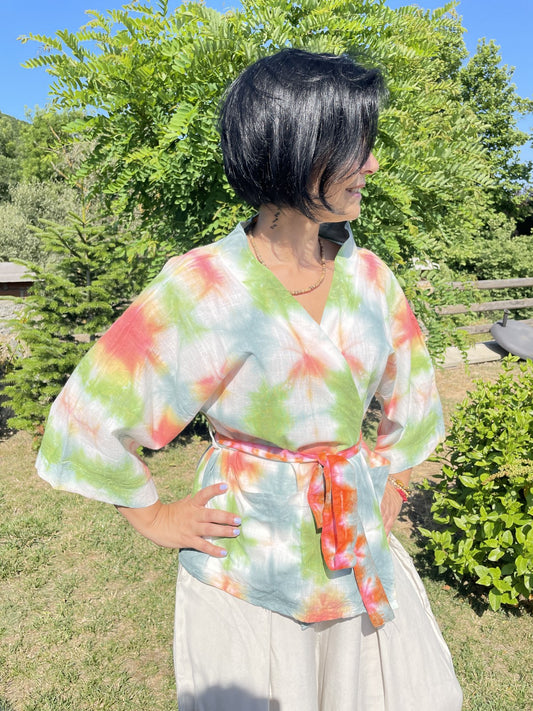 Bohem Batik Kadın Kimono – Yeşil Turuncu