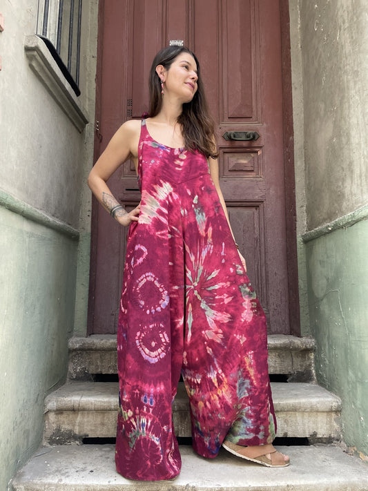 Bohem Kadın Batik Tulum, Bordo Sarı Salaş Tulum