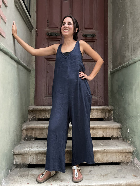 Kadın Keten Tulum – Ayarlanabilir Askılı, Rahat Kesim, Yazlık Bohem Stil