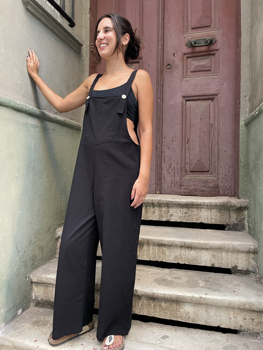 Bohem Kadın Pamuklu Rahat Tulum – Siyah