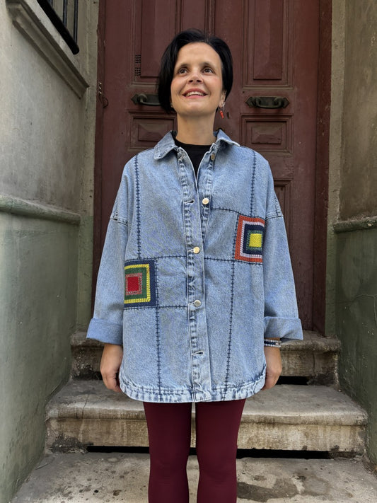 Patchwork Nakış Detaylı Kadın Boho Jean Ceket Mont – Oversize