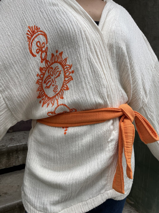 Güneş Desenli Kadın Müslin Kimono