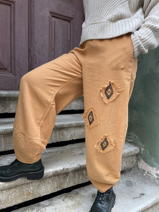 Hardal Bohem Kilim Motifli Kadın Pantolon