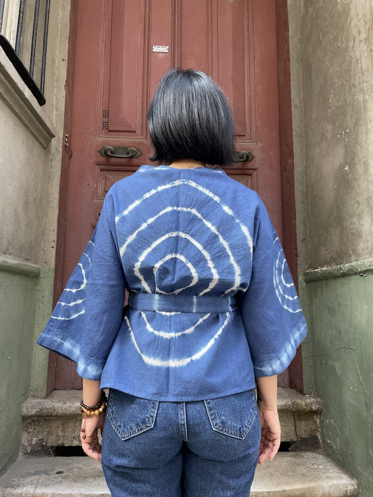 Bohem Mavi Batik Kadın Kimono