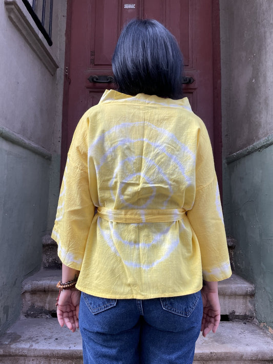 Bohem Sarı Batik Kadın Kimono