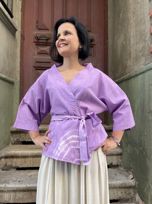 Bohem Mor Göz Batik Kimono - Doğal Kumaş Kadın Kimono