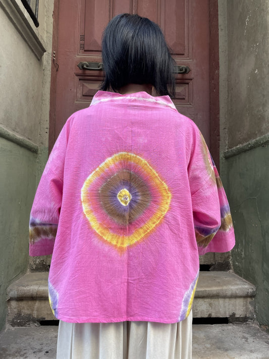 Bohem Pembe Göz Batik Kimono - Doğal Kumaş Kadın Kimono