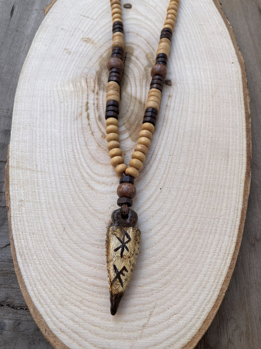 Viking Kahve Rune Fil Dişi Seramik Kolye