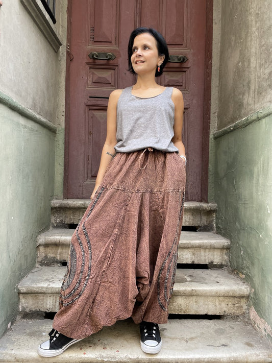 Kadın Nepal Taşlanmış Pantolon – Cepli, Rahat ve Bohem Tarz