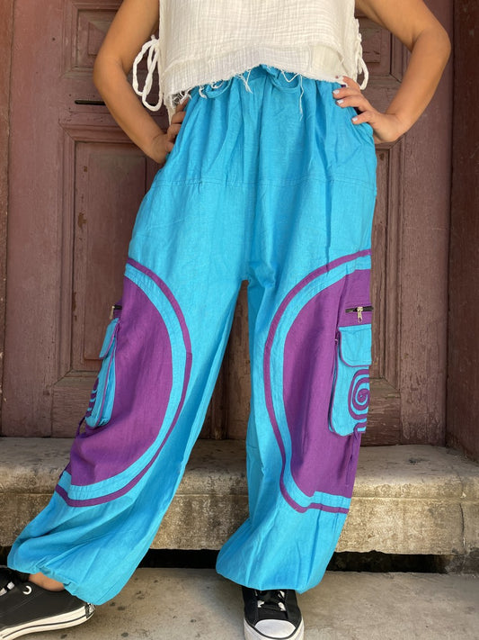 Kadın Bohem Mor Nepal Şalvar Pantolon – AUM Desenli Rahat & Spiritüel Stil