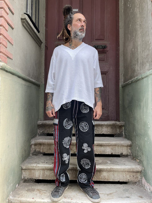 Unisex Nepal Etnik Baskılı Cepli Pantolon – Siyah & Haki