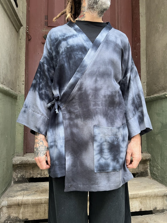 Gece Dalgası Japon Kapamalı Batik Kimono – Tek Parça, Sürdürülebilir