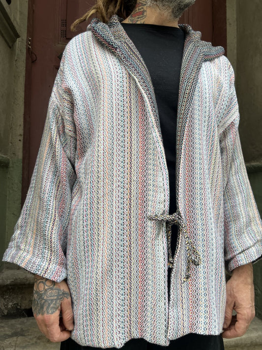 Çift Taraflı Kapüşonlu Hırka Kimono – %100 Doğal Denizli Dokuma, Sürdürülebilir