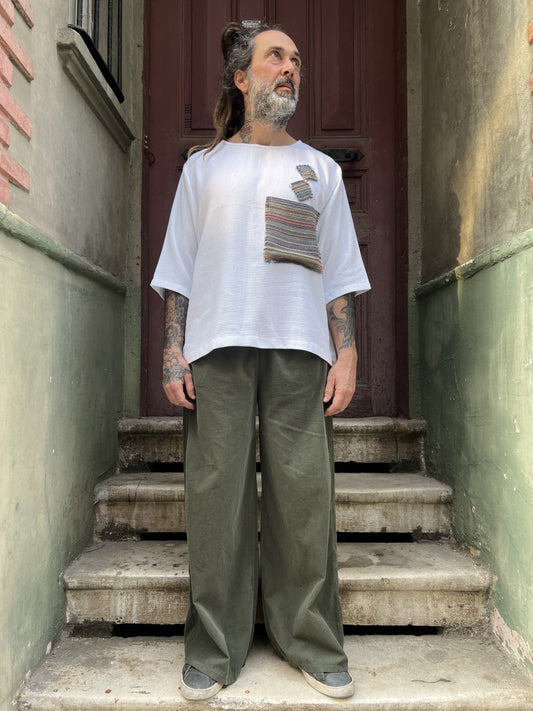 Erkek Bohem Breeze Patchwork Bluz – %100 Pamuk, Sürdürülebilir