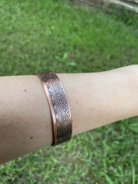 Etnik Motif Bakır ve Pirinç Bileklik - El Yapımı Bohem Şıklık