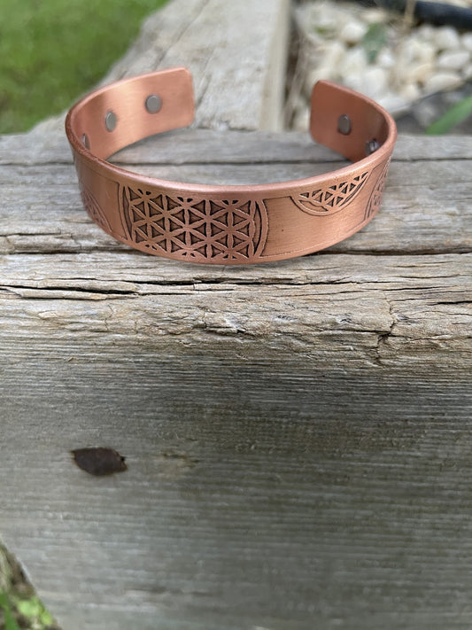 Yaşam Çiçeği Bakır ve Pirinç Bileklik - El Yapımı Bohem Şıklık