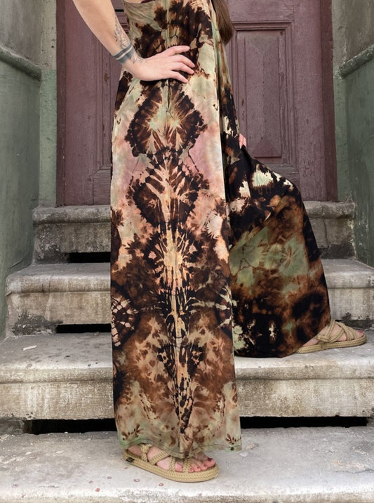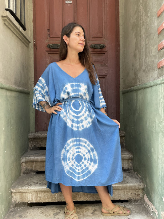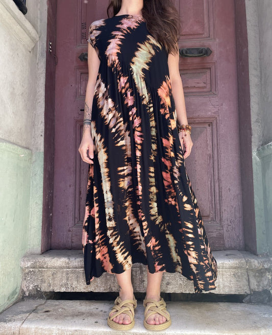 Bohem Batik Doğal Boyama Salaş Asimetrik Elbise