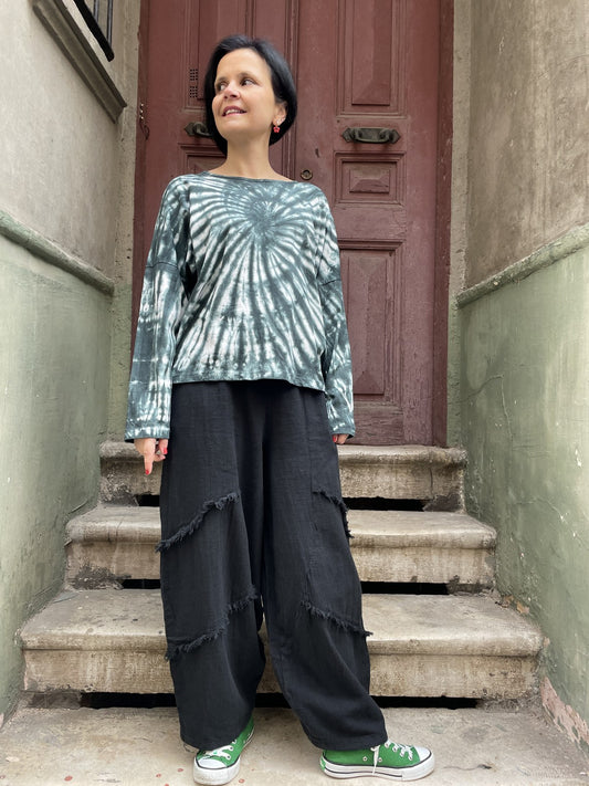 Bohem Batik Doğal Boyama Kadın Tulum, Siyah Salaş Tulum