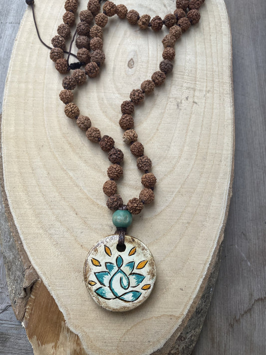 Yogi Lotus Sembolü Rudraksha Tohumu Seramik Doğal Tas Mala Kolye