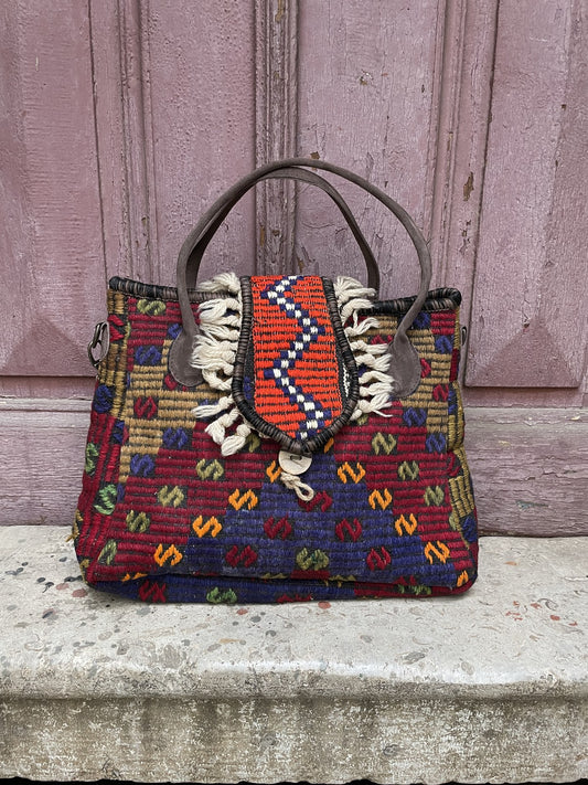 Bohem Canlı Renkli Tasarım Kilim El Çantası