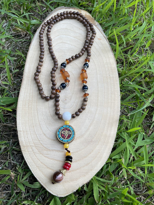 Bohem Budanın Gözleri Ahşap Doğal Taş Mala Kolye