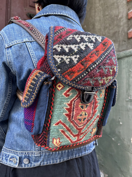 Bohem Canlı Renkli Mini Kilim Sırt Çantası