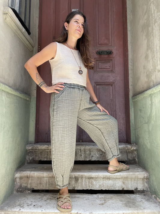 Bohem Nakışlı Pamuk Kadın Yelek ve Pantolon Takımı – Doğal Kumaşlı