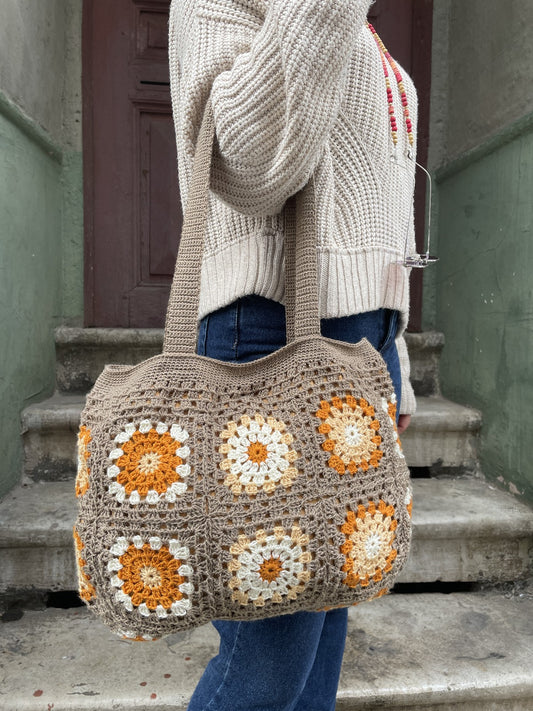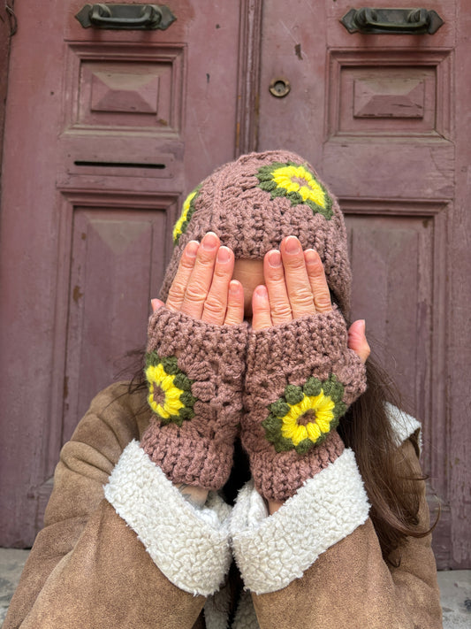 Bohem Patchwork El Örgüsü Bere Eldiven Takımı - Toprak