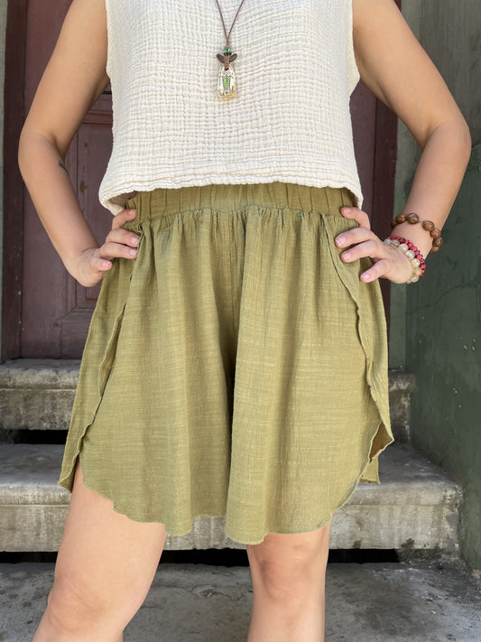 Bohem Sarı Bej Kahve Yeşil Çift Taraflı Bağlamalı İpek Etek