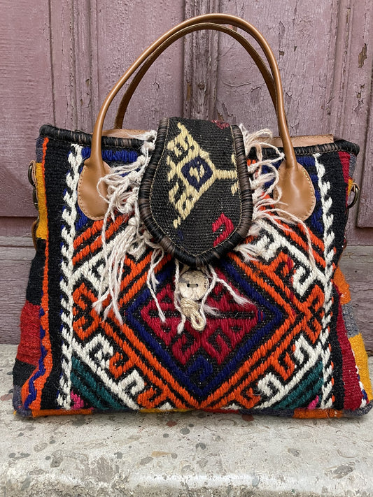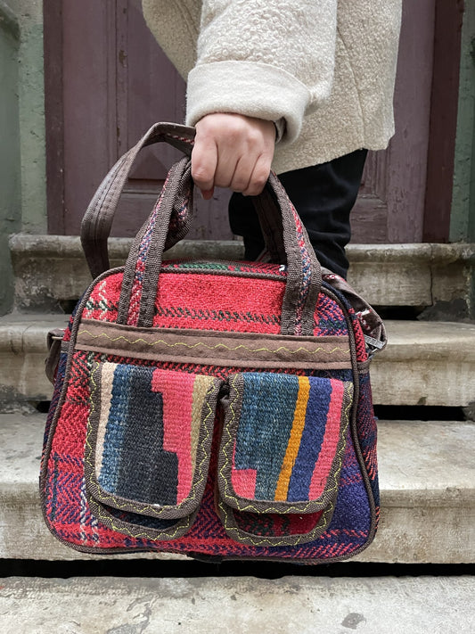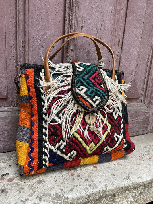 Bohem Renkli Tasarım Kilim El Çantası