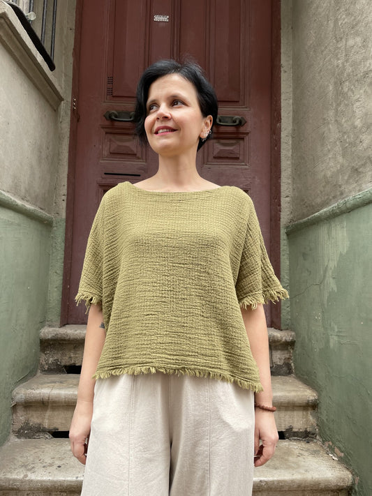 Bohemian Muslin Loose Boat Neck Blouse