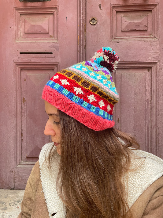 Bohem Yavruağzı Motifli Yün Bere Eldiven Takımı