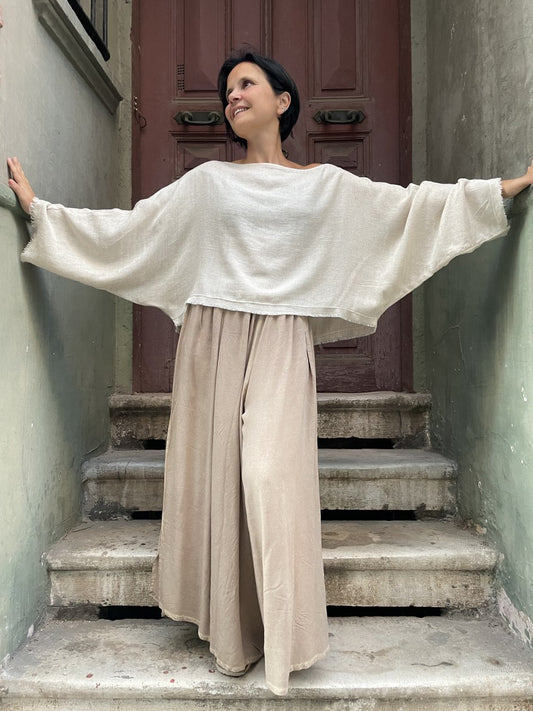 Bohemian Muslin Loose Boat Neck Blouse
