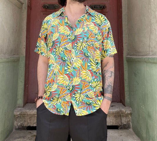 Bohemian Leaf Pattern Colored Hawaiian Short Sleeve Shirt