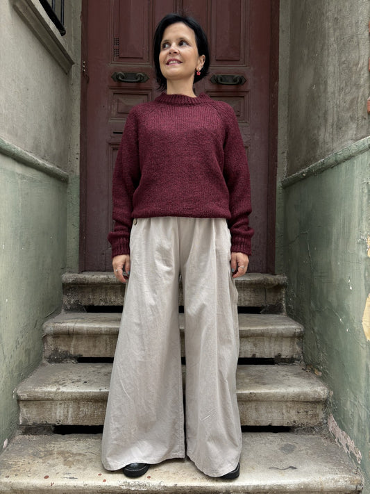 Bej Tonları Unisex Kadife Salaş Palazzo Pantolon