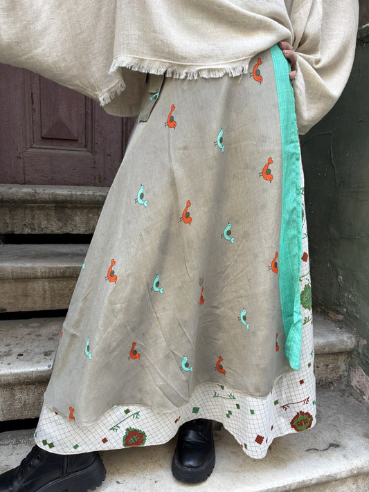 Birdsong – Çift Taraflı Kuş Desenli İpek Etek