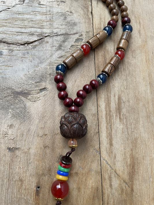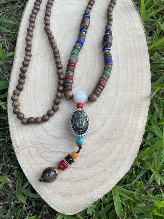Sold outBohem Ağaç Doğal Taş Buda Mala Kolye