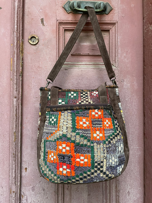Bohem Antrasit Turuncu Kilim Omuz Çantası
