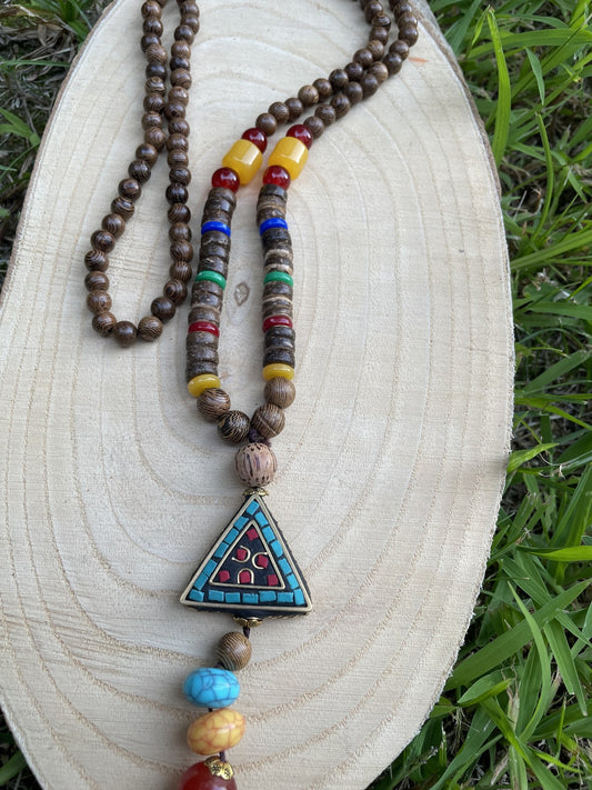 Bohem Ağaç Doğal Taş Üçgen Mala Kolye