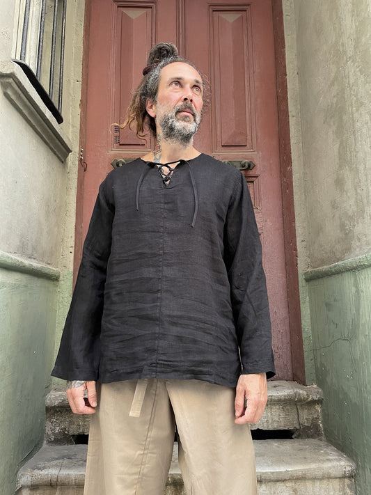 Sold outBohem Bağcıklı Erkek Keten Gömlek