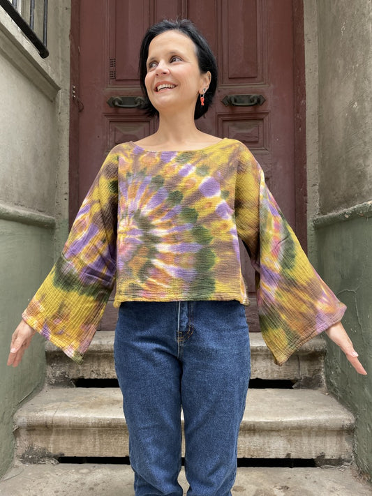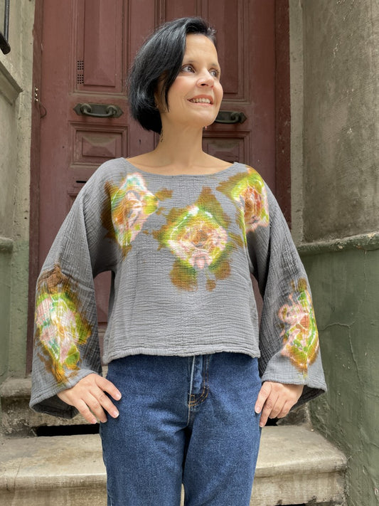 Batik Müslin Bluz – “Aurora” | El Boyaması, Renkli ve Tek Parça Bohem Tasarım