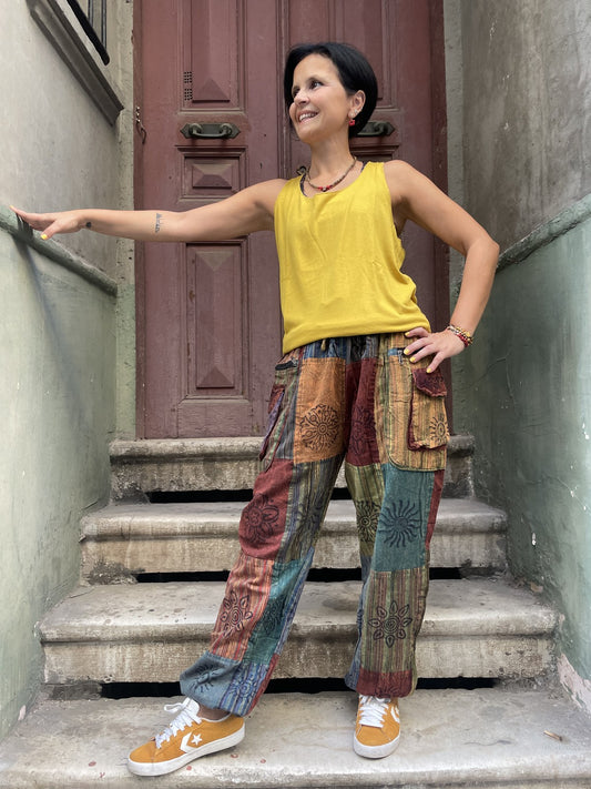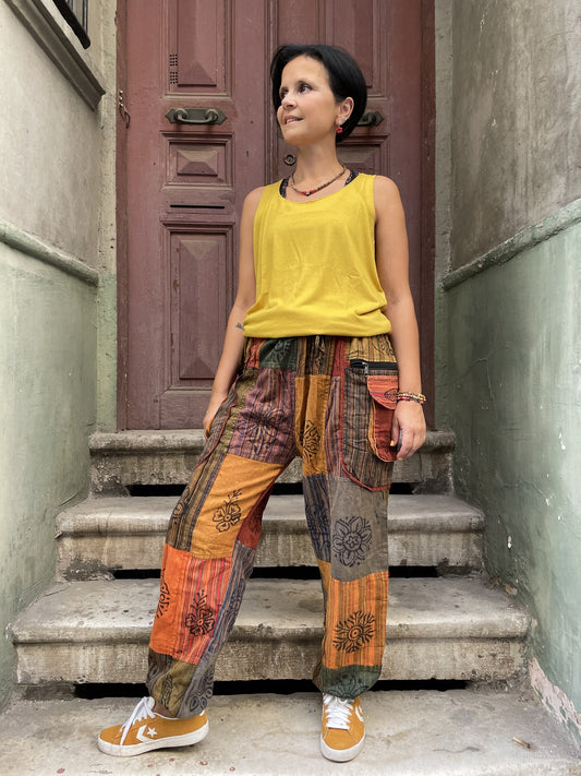 Unisex Nepal Taşlanmış Kadın Pantolon – Cepli, Rahat ve Bohem Tarz
