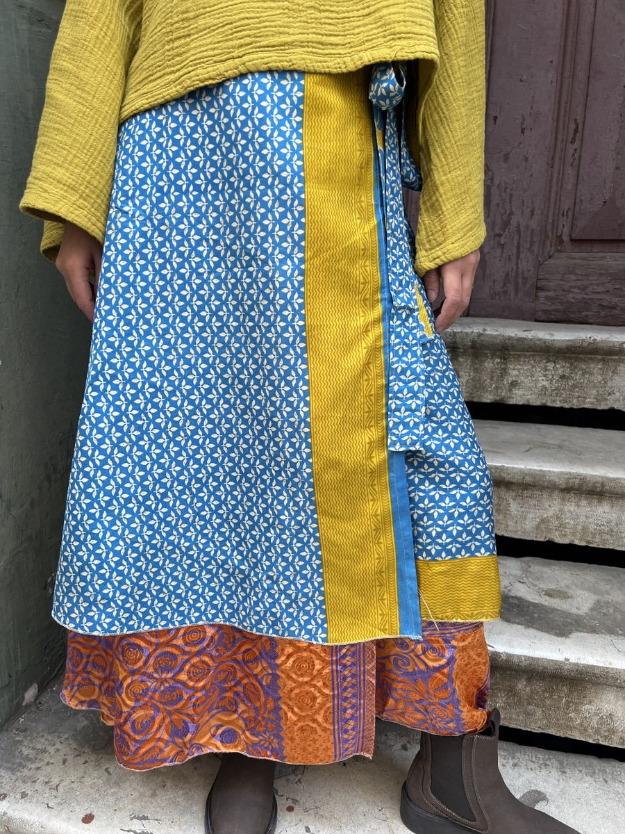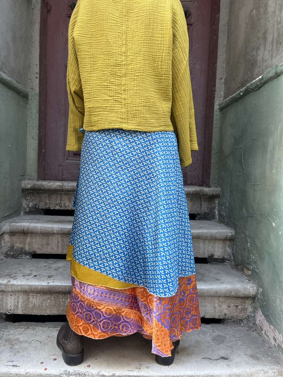 Bohem Çift Taraflı İpek Etek – Mavi - Büyük Bedene Uyumlu