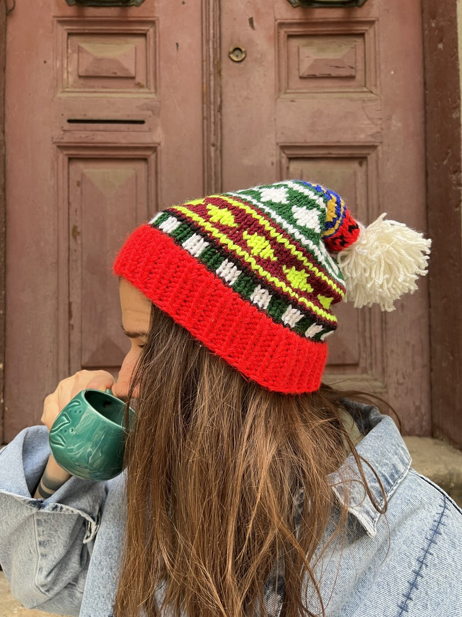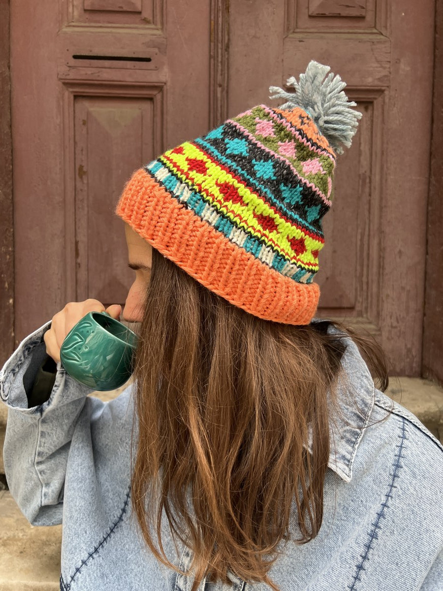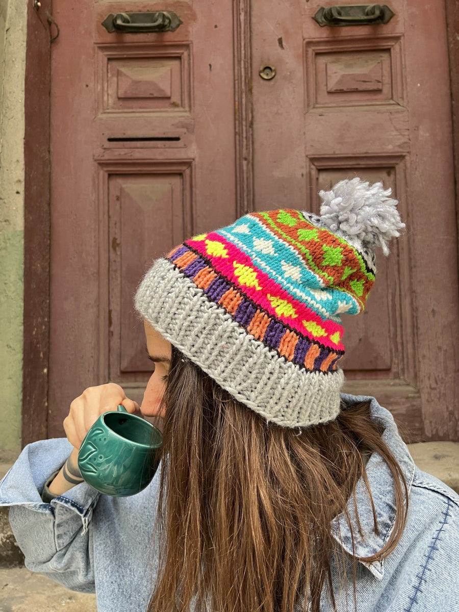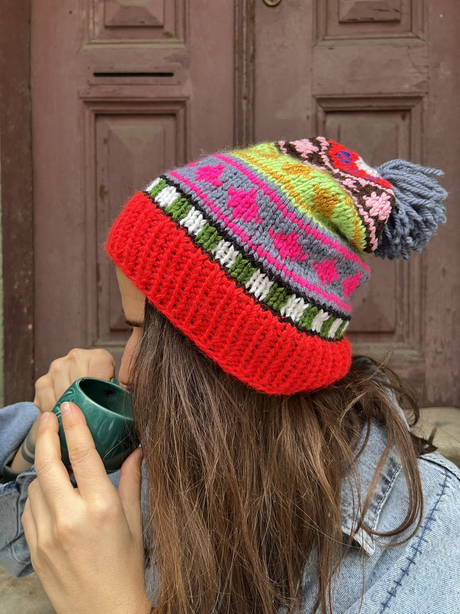 Bohem El Örgüsü Kışlık Bere – Pamuk & Yün Karışımlı