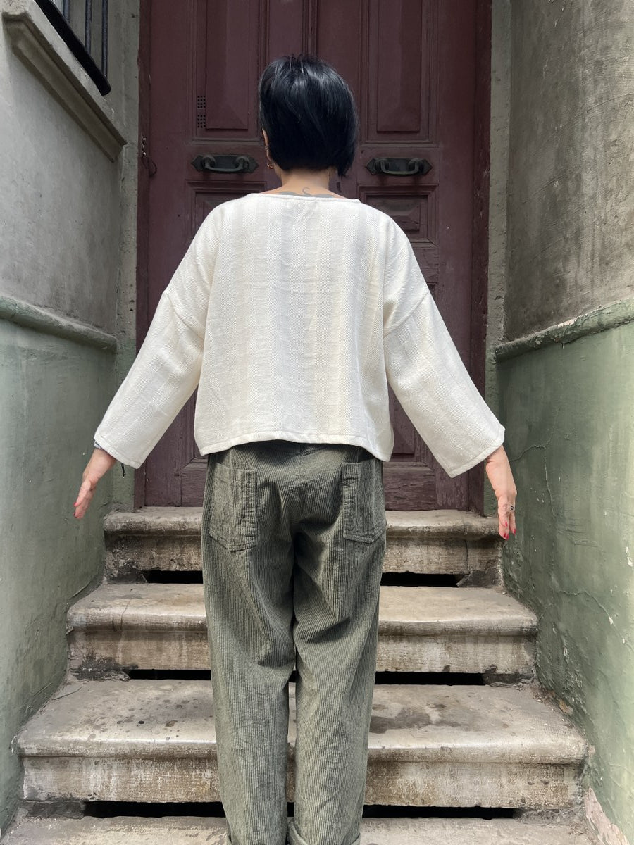 Ivoria Dokuma Kadın Bluz – Tek Üretim, %100 Pamuk, Sürdürülebilir Tasarım